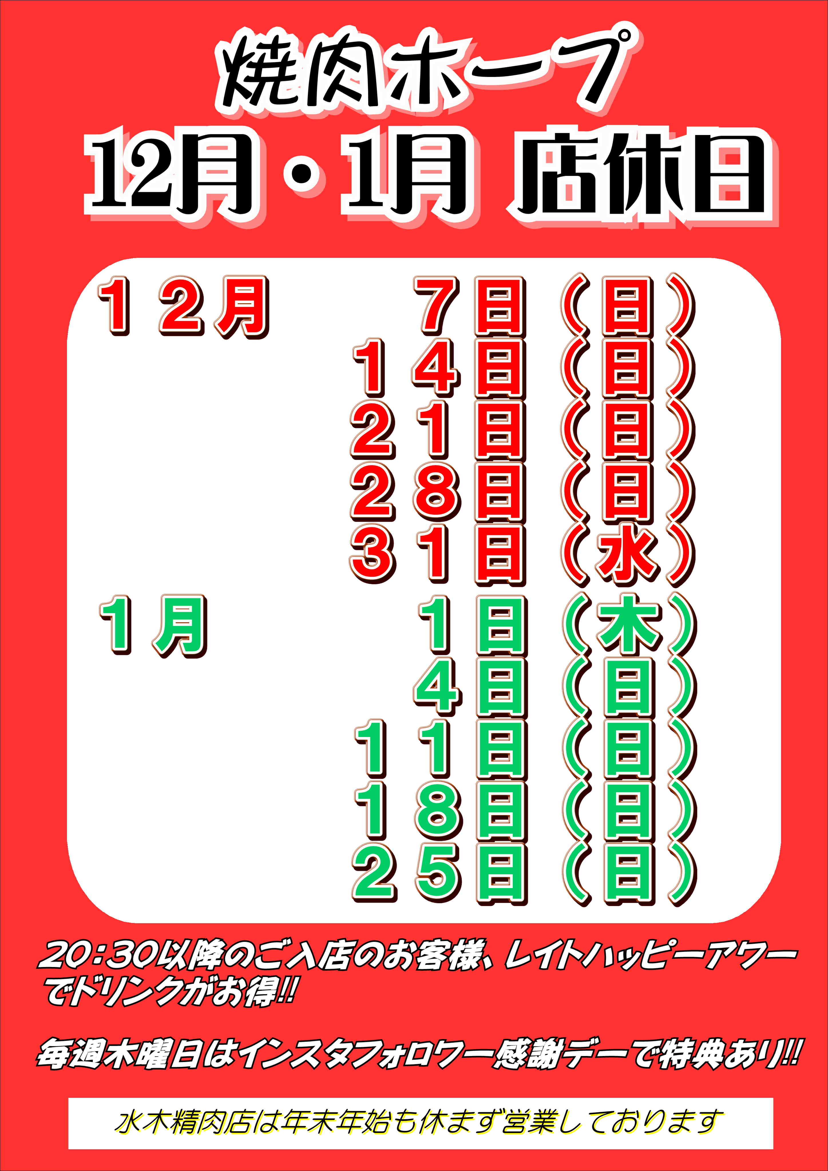 ※水木精肉店では、『焼肉ホープ』のご予約確認・受付はできません