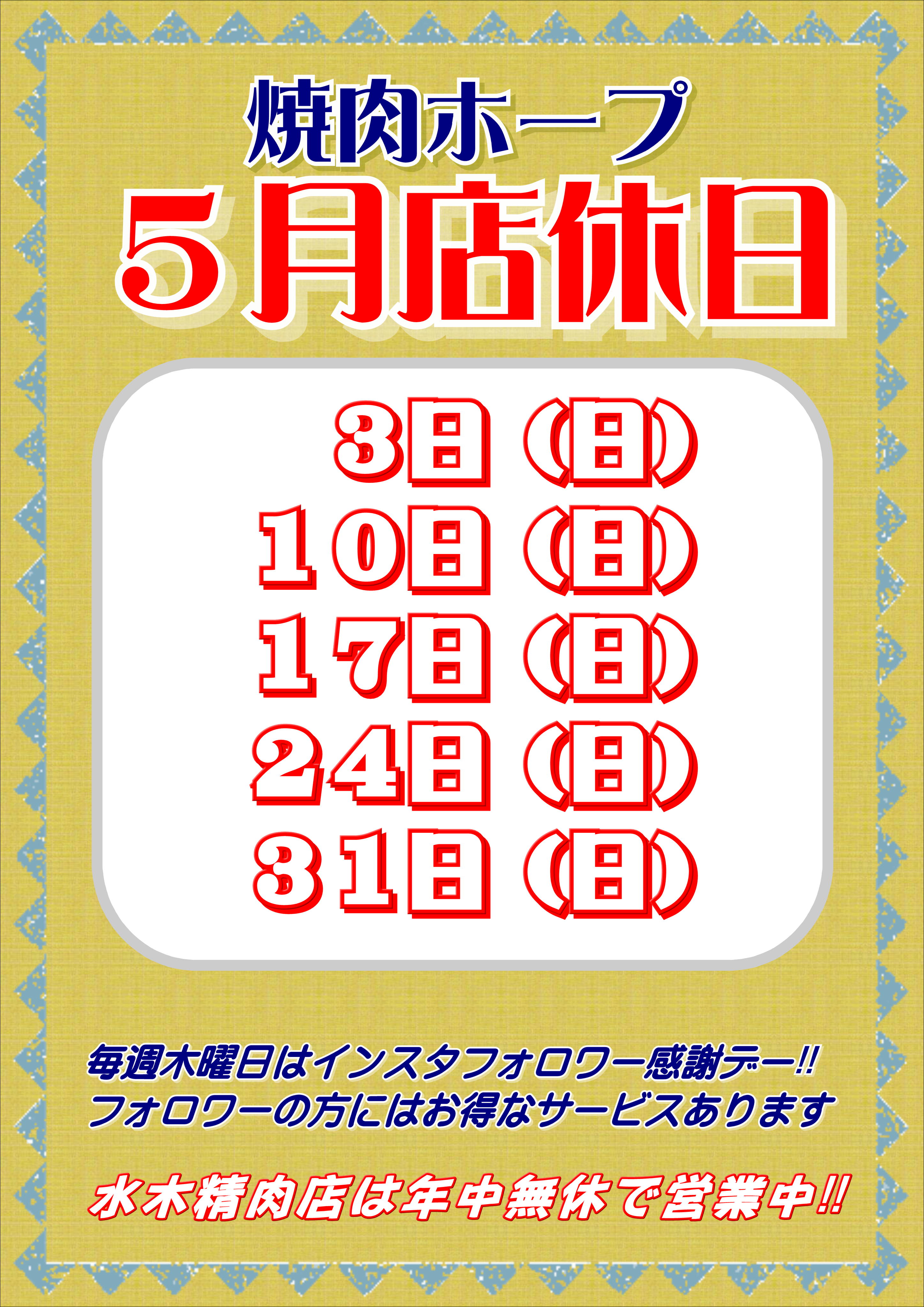5月も、ご家族やご友人、職場のお仲間と美味しいお肉を囲んで、楽しいひとときを焼肉ホープでお過ごしいただけたら幸いです。皆様にお会いできるのを、スタッフ一同、心より楽しみにしております!